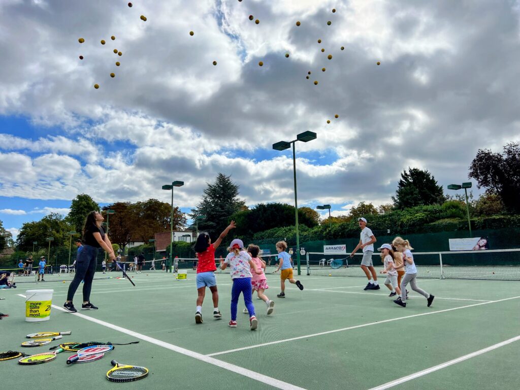 Red tennis takes place on a much smaller tennis court, using mini tennis nets, shortened tennis rackets (21 – 23 inches) and a bigger and slower ball.